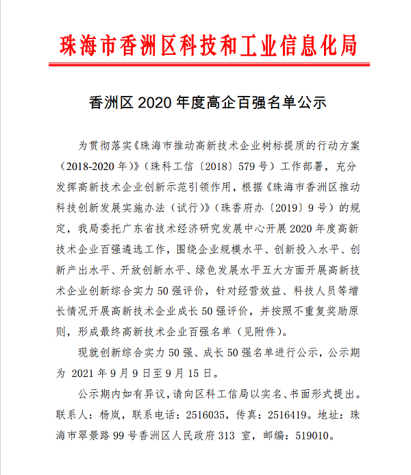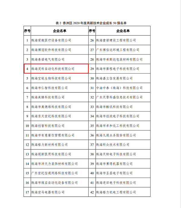 珠海市香洲區(qū)科技和工業(yè)信息化局發(fā)文公布《香洲區(qū)2020年度高企百?gòu)?qiáng)名單公示》。珠海靈科自動(dòng)化科技有限公司(以下簡(jiǎn)稱靈科超聲波)榮獲“香洲區(qū)2020年度高新技術(shù)企業(yè)成長(zhǎng)50強(qiáng)”。