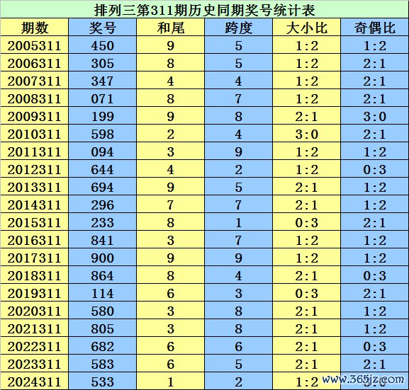 积年第311期陈设三同时奖号开出:450、305、347、071、199、598、094、644、694、296、233、841、900、864、114、580、805、682、583、533。