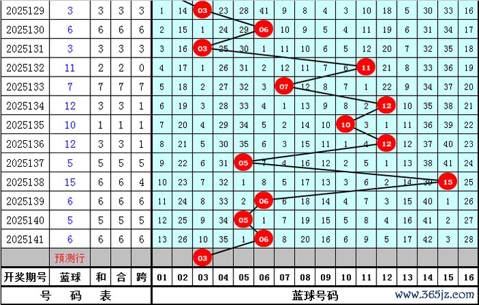 蓝球分析:上期开出蓝球号码06,号码遗漏值为2,温冷蓝球近期开出比例较高,本期防冷码蓝球不竭解冻,参考蓝球号码03。